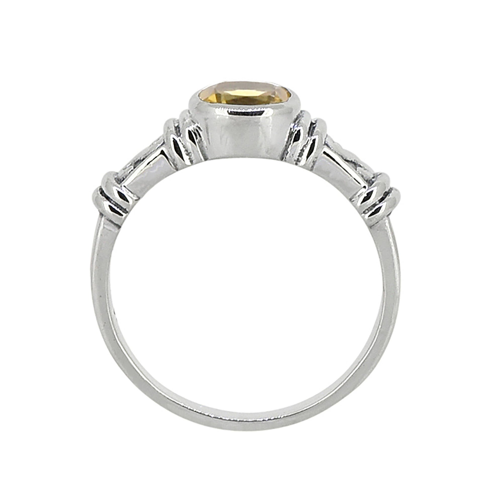 Crafted from genuine 925 sterling silver, this elegant ring showcases a natural, heat-enhanced cushion-cut citrine at its center. The warm golden hue of the gemstone is beautifully highlighted by a decorative band featuring engraved, stylized “S” motifs. These raised details wrap gracefully around the setting, creating a balanced design that separates the polished silver above and below the stone. With its smooth finish and refined craftsmanship, this piece radiates both timeless charm and modern sophistication.