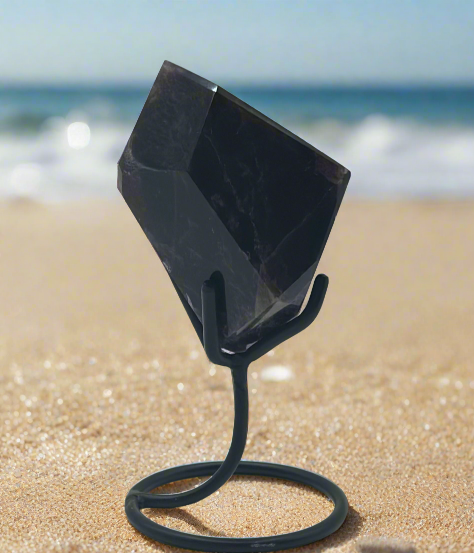 This beautifully polished amethyst freeform features rich, deep purple hues that catch the light and showcase the crystal’s natural elegance. The saturated violet tones are enhanced by subtle banding and natural inclusions, creating a piece that is both visually striking and energetically soothing.