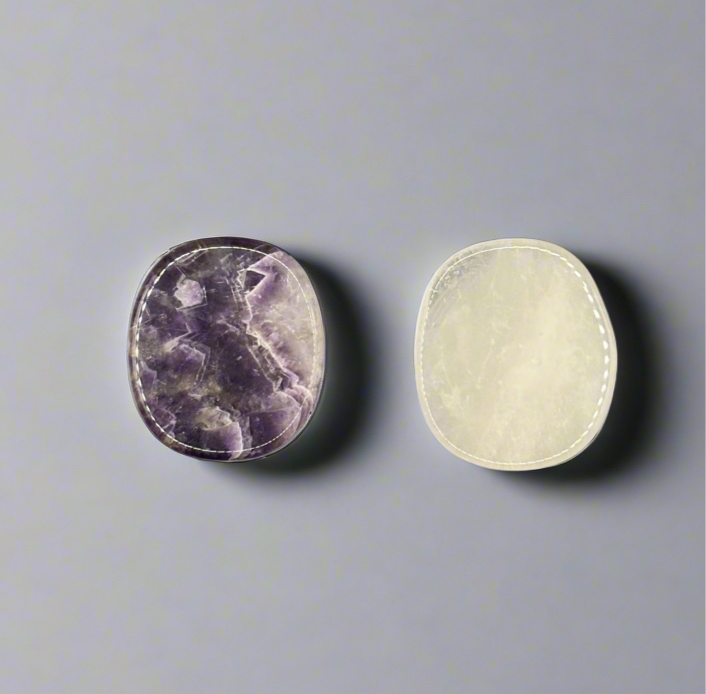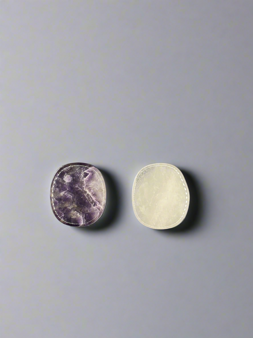 Bring beauty and positive energy to your everyday phone use with this genuine crystal phone grip. Handcrafted with natural Amethyst, believed to promote calm and spiritual growth, and Clear Quartz, thought to bring clarity and amplify positive energy. Each stone is unique in color and pattern, making your phone grip truly one-of-a-kind.