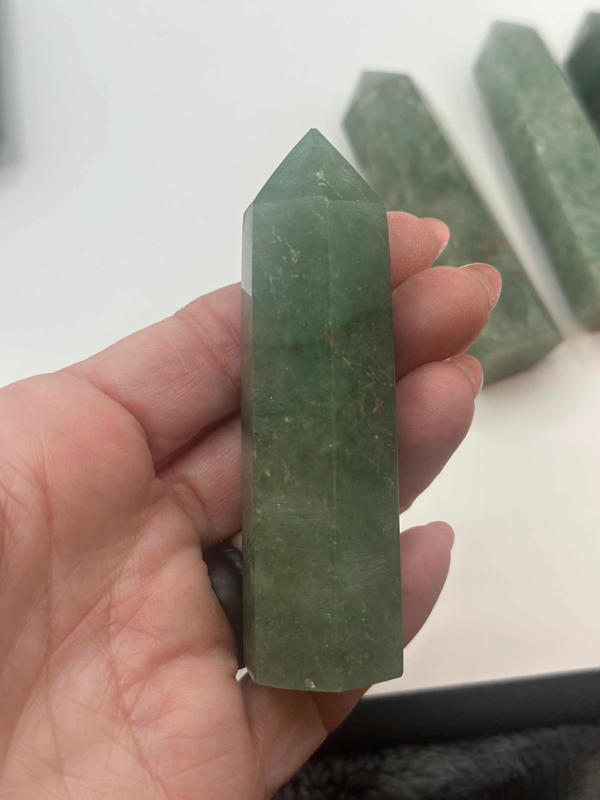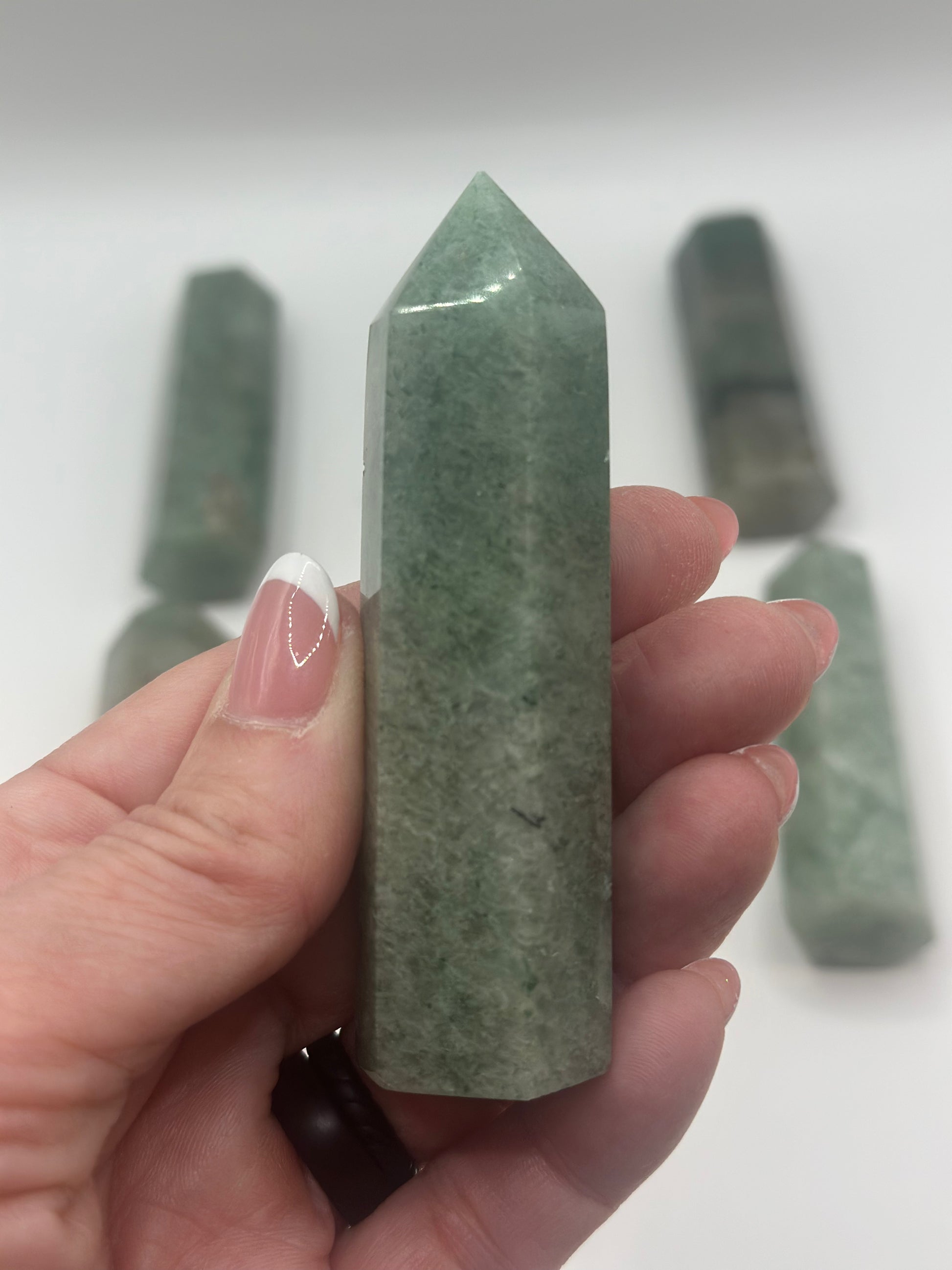 Green Aventurine is known as the Stone of Opportunity, often believed to attract prosperity, luck, and new beginnings. These 4-inch towers are perfect for setting intentions, manifesting abundance, and bringing balance to the heart chakra.