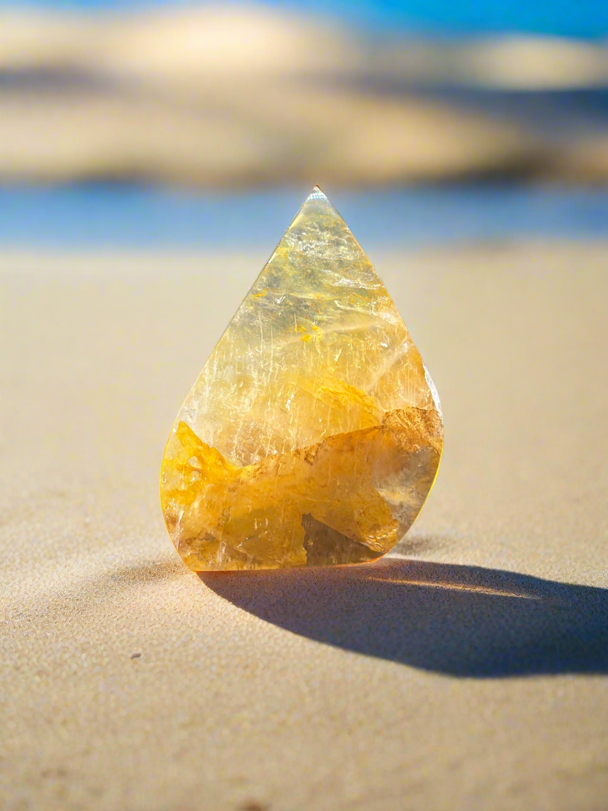 Carved into a smooth, balanced flame shape, it serves both as a powerful healing tool and an eye-catching decorative piece. Known for promoting spiritual healing, clarity, and amplifying positive intentions, Golden Healer Quartz is a beautiful and meaningful addition to any crystal collection.