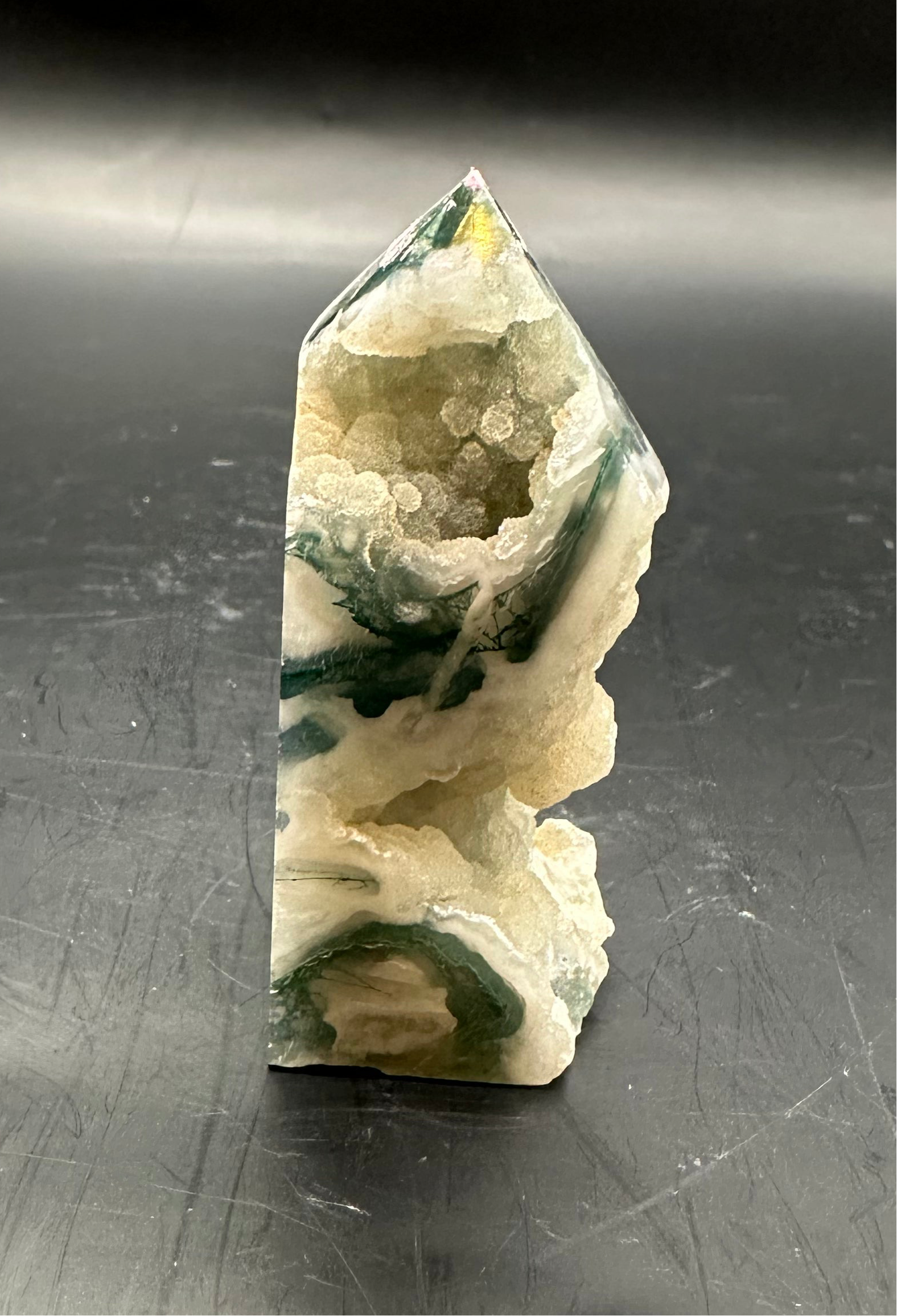 Moss Agate Druzy Tower 🌿✨ (74g)