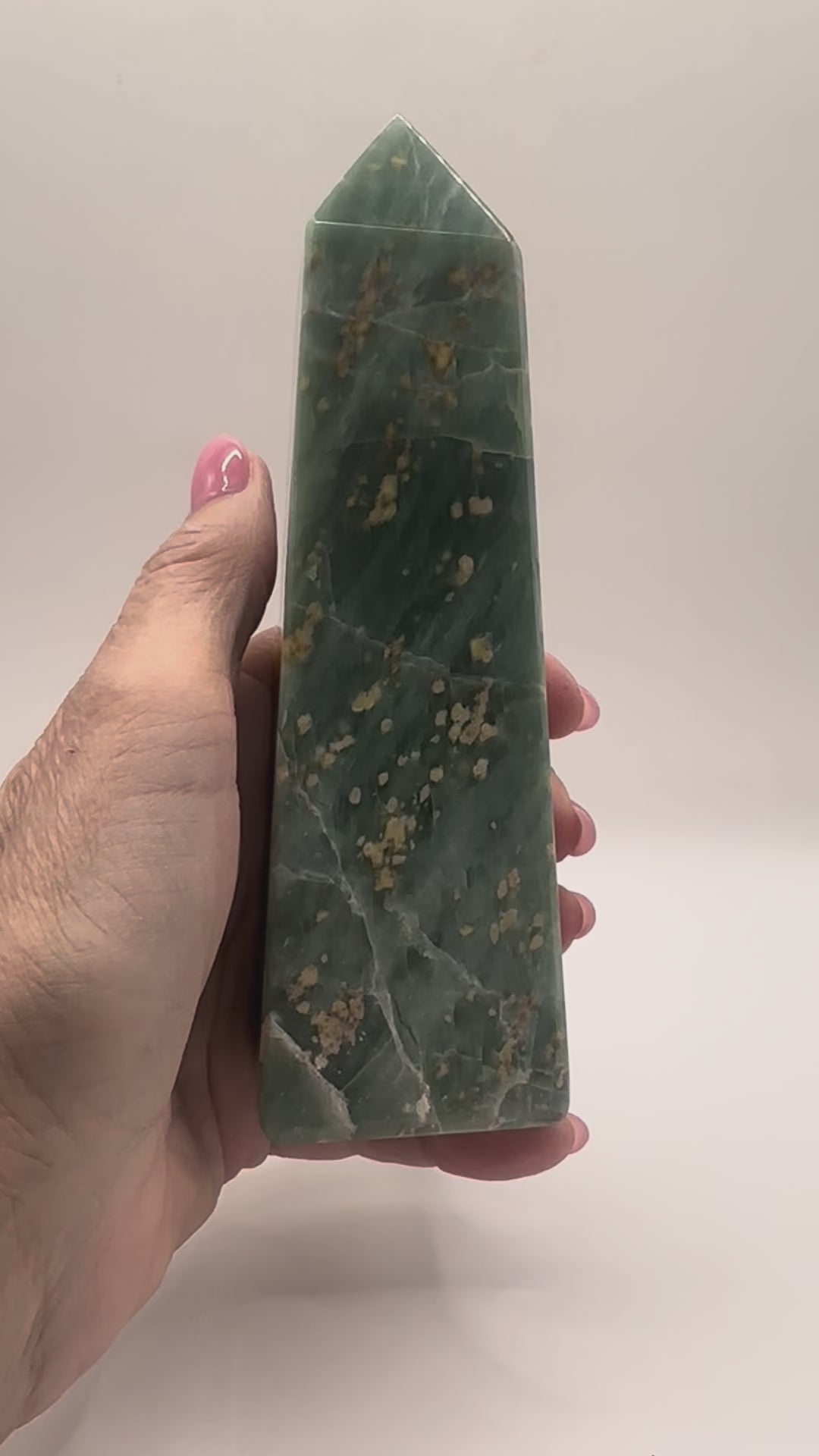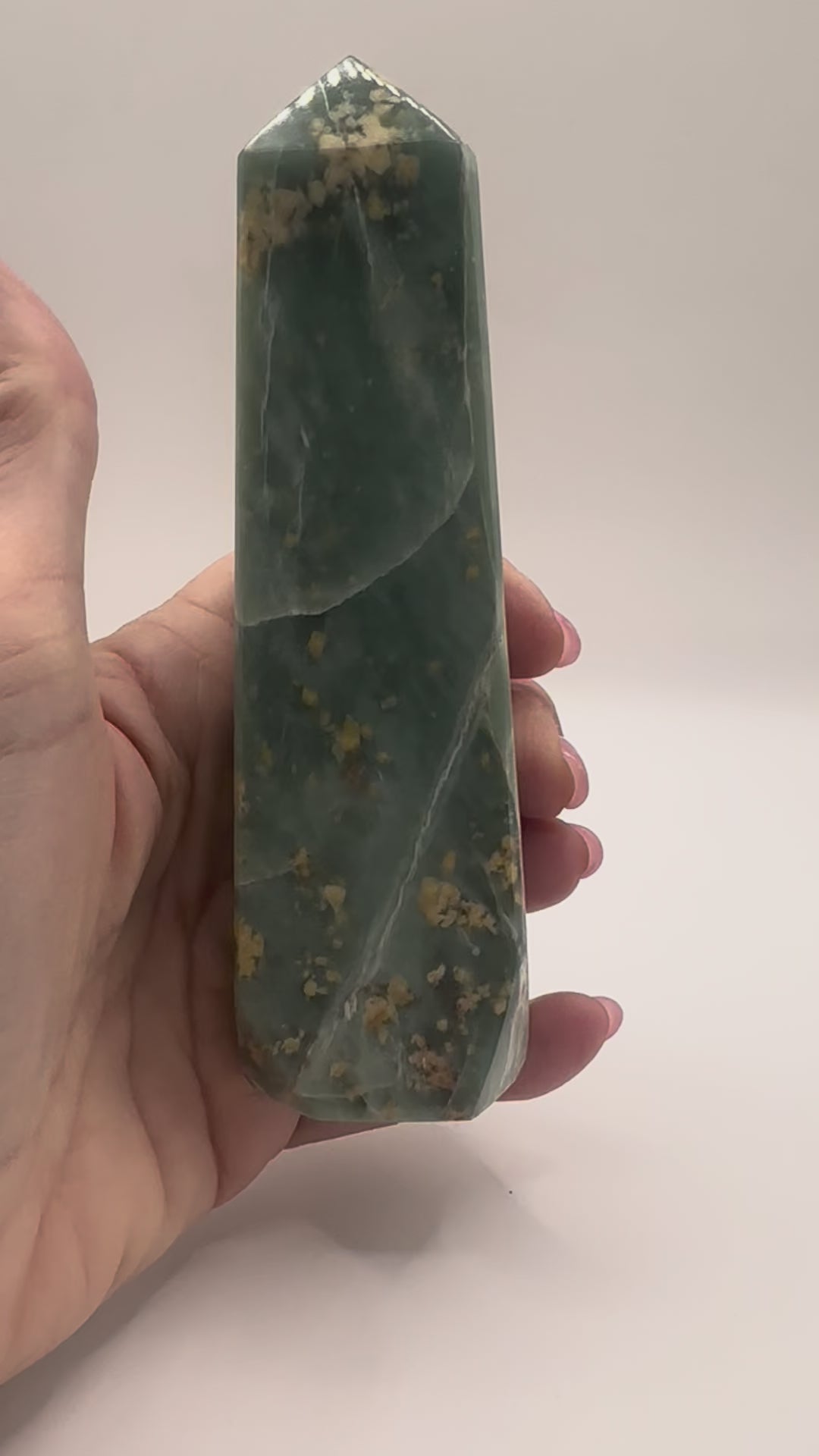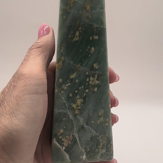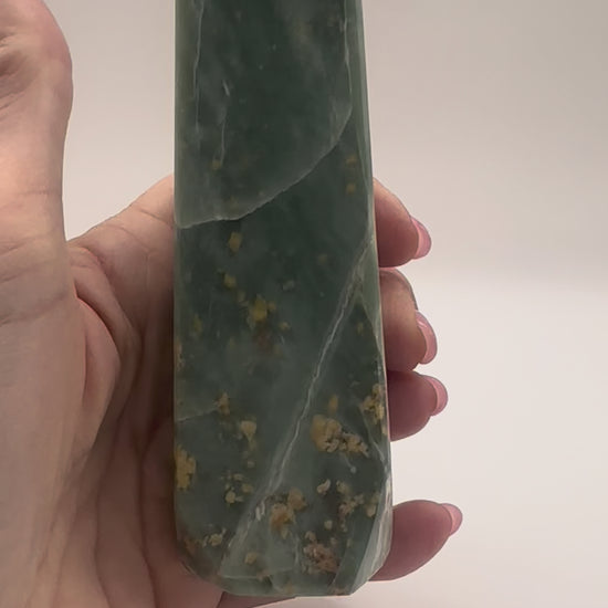 Mined in the mountains of Pakistan, these Jade towers are hand-carved to channel the stone’s steady, balancing energy upward. Known as a crystal of growth, prosperity, and protection, Pakistan Jade carries a deep green hue that resonates strongly with the heart chakra, encouraging harmony and emotional balance.