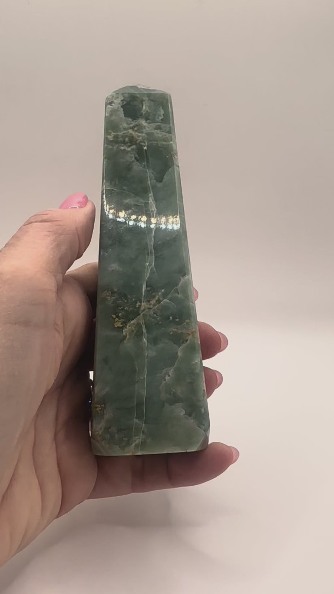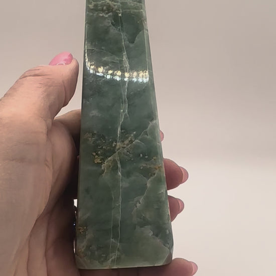 The tower shape directs Jade’s stabilizing energy upward, making it perfect for placing in your home, workspace, or meditation area. Each piece radiates a renewing, heart-centered frequency — a timeless crystal ally for strength, healing, and abundance.