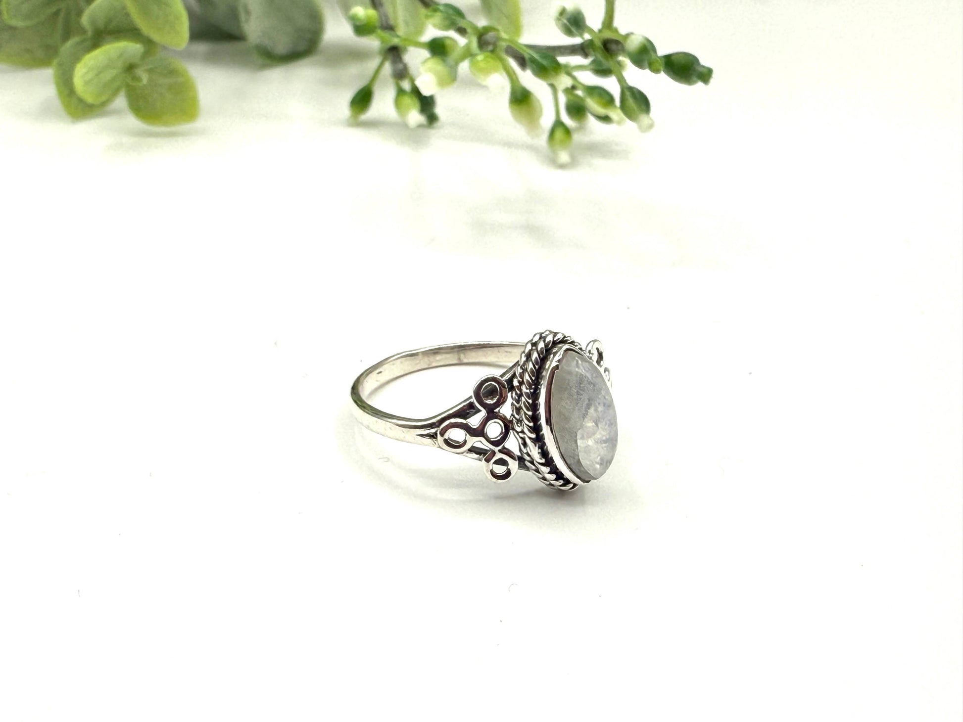 Rainbow Moonstone Gemstone 925/Sterling Silver Ring